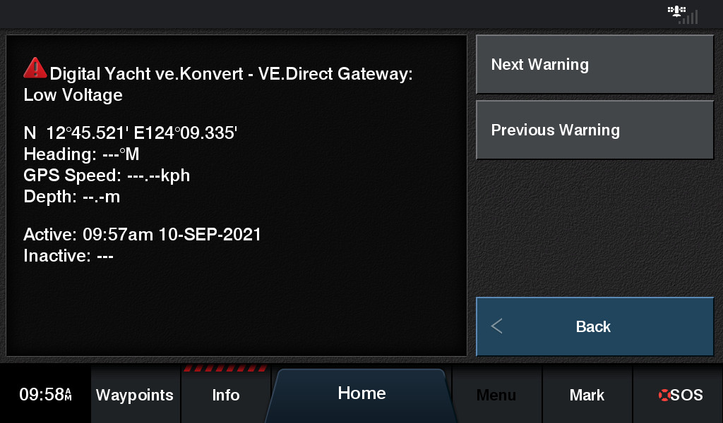This functionality already existed but required the use of a sophisticated Cerbo module. veKonvert is a lower cost, simpler solution for smaller installations that just need the electrical data displayed on a Multi Function Displays (MFD).